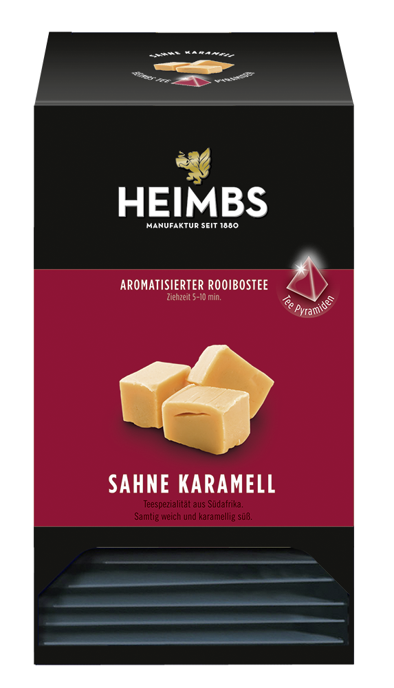 Pyramidenbeutel Die transparenten und geschmacksneutralen Pyramidenbeutel bieten ganzen Teeblättern und Blüten ausreichend Raum, sich zu entfalten. Erleben Sie mit allen Sinnen, wie der Tee nach dem Kontakt mit dem Wasser aufquillt und sein Aroma entwickelt. Die feine Struktur des Pyramidenbeutels ermöglicht einen maximalen Kontakt zwischen den Zutaten und dem heißen Wasser. So wird die Teatime zum Fest der Sinne.Verkehrsbezeichnung: Aromatisierter Rooibostee Sahne Karamell
