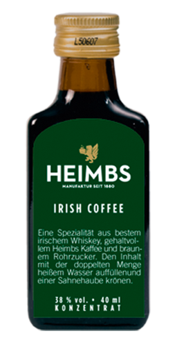 Eine Spezialität aus den besten irischem Whiskey, gehaltvollem Heimbs Kaffee und braunem Rohrzucker. Den Inhalt mit der doppelten Menge heißem Wasser auffüllen und einer Sahnehaube krönen.